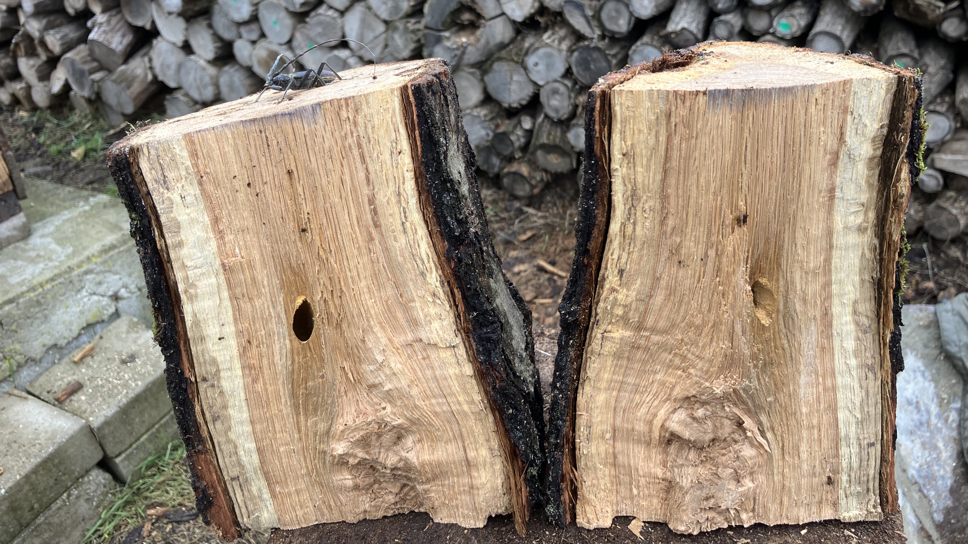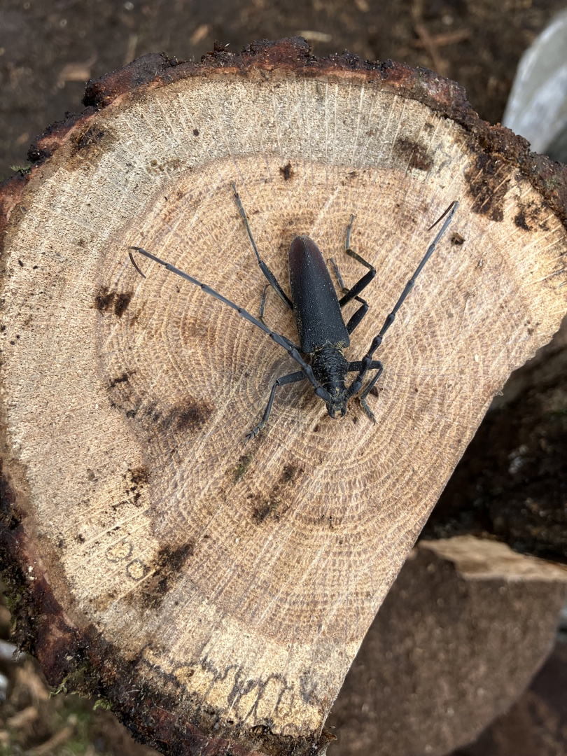 A cincérek az egyik kedvenc rovarcsoportom, amelyből már több faj - köztük védett és inváziós is - előkerült az udvaromban több évre elrakott száradó sarangokból. Február elsejének reggelét is hasogatással kezdtem, amikor az egyik kocsánytalan tölgy tuskóban egy feltáruló járatra lettem figyelmes, amiből egy fej és egy tor kandikált ki. Mikor óvatosan kihúztam a test többi részét, gyermekeim nagy örömére kiderült, hogy egy nagy hőscincért találtam.