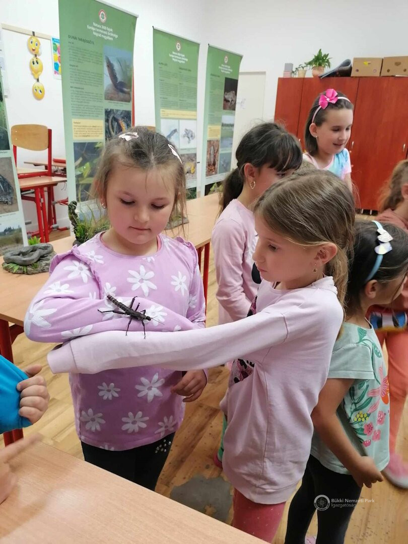 Pénteken számunkra is egy régi-új programmal érkeztünk a mátranováki általános iskolába. "Nemszeretem" állatok volt a fő téma, de kiderült, hogy a gyerekek igenis szeretik a kétéltűeket, hüllőket és az ízeltlábúakat. Azonban vannak félelmeik egyes fajokkal szemben és némelyik állatkától undorodnak. Miután kicsit elbeszélgettünk az ok-okozatokról és megértették, miért fontos, hogy nyálkás legyen egy béka, miért nem kell félni a siklóktól, mi a szerepük az ízeltlábúaknak a nagyvilágban és miért nem kell attól tartani, hogy kirándulás során "ránk fekszik egy medve", már elillantak a rossz érzések a nebulók kobakjából.