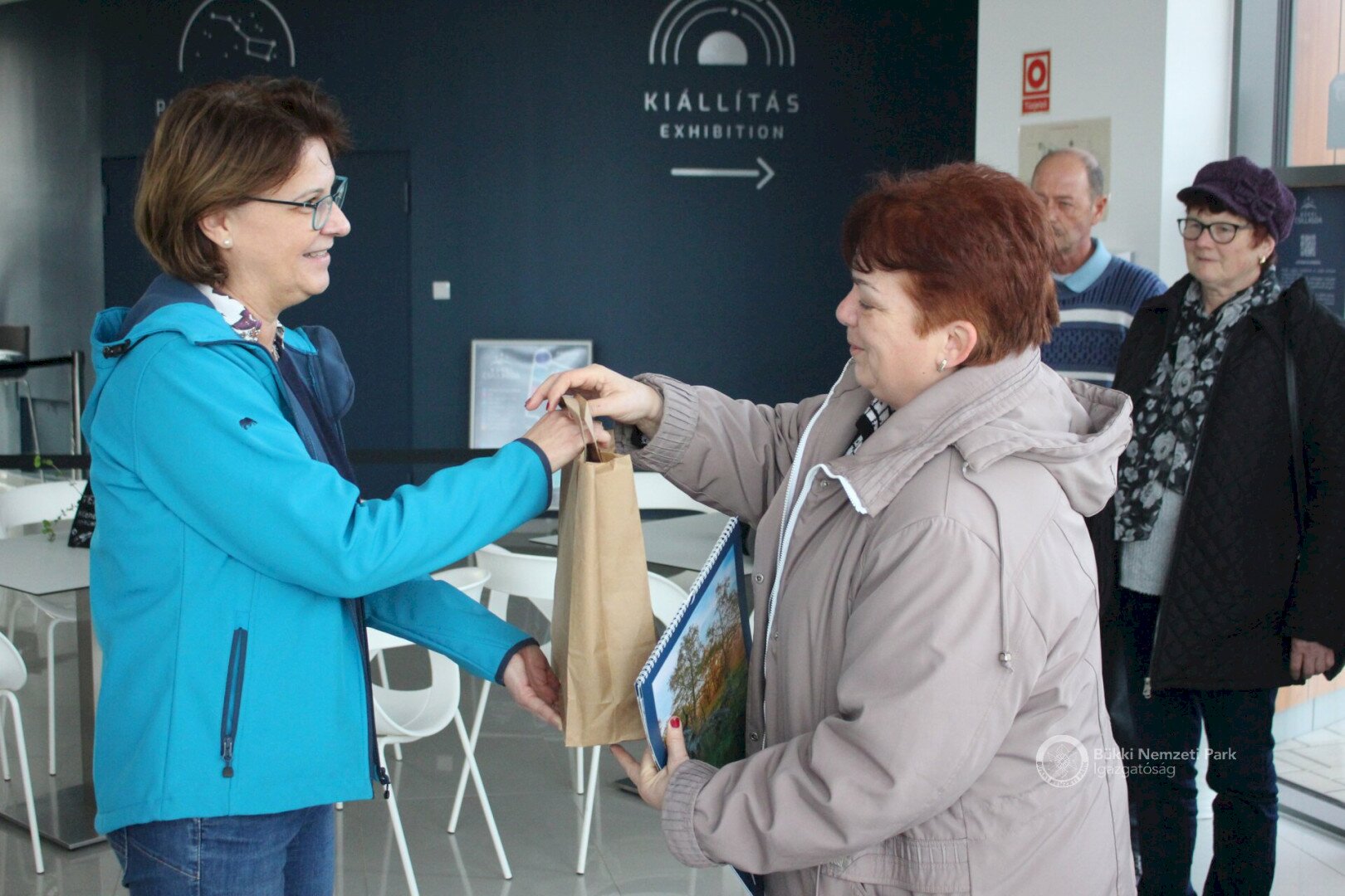 Kovács-Tanács Istvánné Erika Mórahalomról családtagjaival és barátaival érkezett hozzánk. Elmondása szerint már tavaly kinézték maguknak a Bükki Csillagdát, hogy ide mindenképpen szeretnének ellátogatni. Most egy téli pihenés során illesztették programjaik közé a BNPI csillagászati látogatóközpontját, s nagyon örült annak a kellemes meglepetésnek, hogy ő lett a 50 ezredik látogató. E különleges alkalomból számukra Szádeczky Kornélia, a BNPI Ökoturisztikai és Környezeti Nevelési Osztályának osztályvezetője nyújtott át egy ajándékcsomagot. A kellemes, napos időnek köszönhetően rajtuk kívül még többen is betértek január 11-én a Bükki Csillagdába - ezen a napon a belépőjegyek mellé mindenki kapott egy-egy hűtőmágnest is ajándékba.