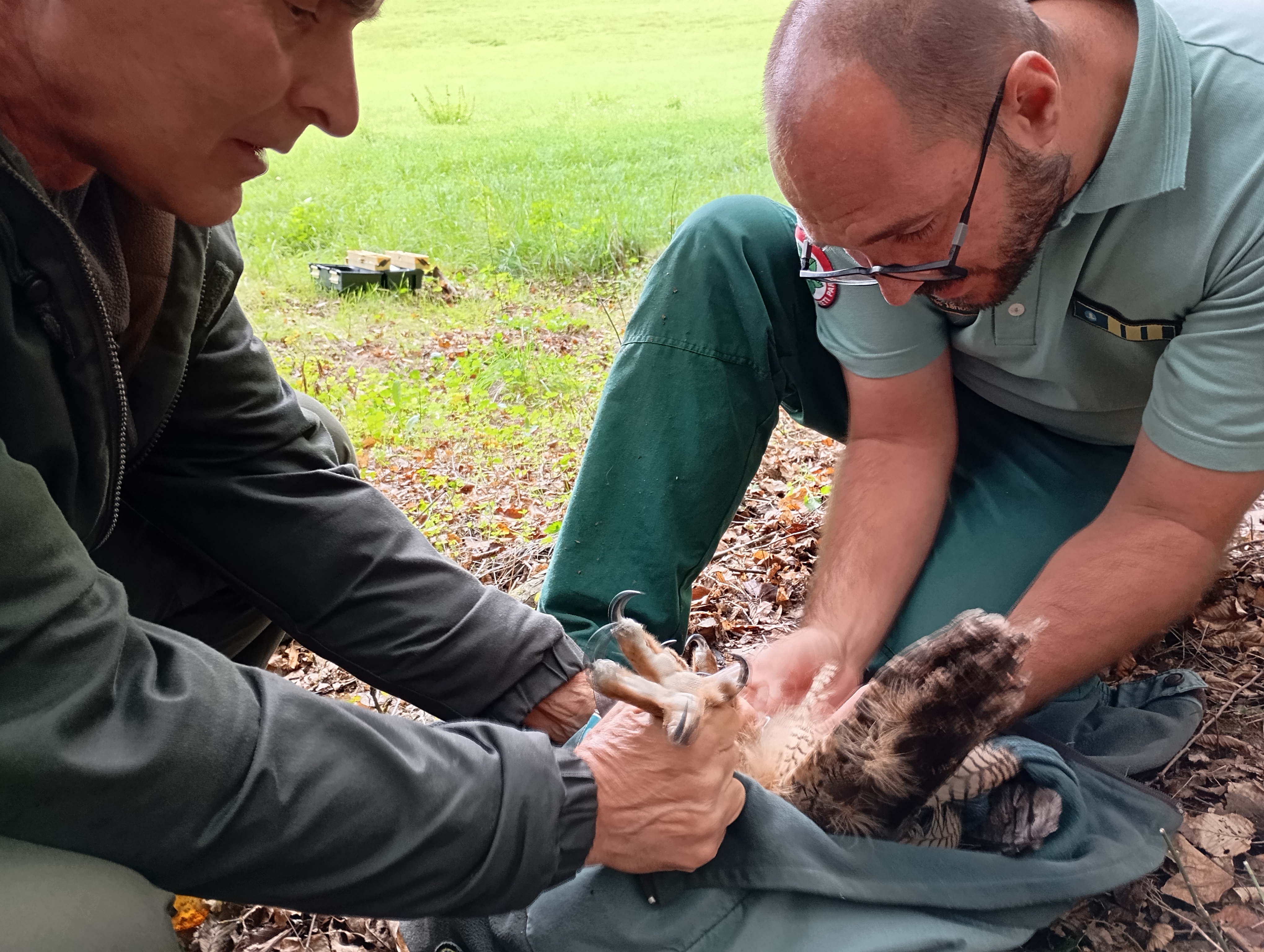 Miután a helyszínen a madarat Bodzás János természetvédelmi őr kollégánk meggyűrűzte, sor kerülhetett a szabadon engedésre. A fiatal uhu nem sokat teketóriázott, határozott ívben az őt jól rejtő lombok közé repült. Nem sokkal később már a fák sűrűjéből hallottuk az erdőlakó kisebb madarak riasztását, ami nyilvánvalóvá tette, hogy hol próbál éppen elrejtőzni ez a frissen elengedett csúcsragadozó. Az elkövetkező napokban, hetekben igyekszünk visszatalálni madarunkat, és reméljük, hogy hamar megtalálja helyét és párját a vadonban.